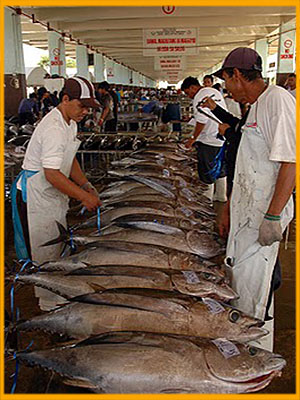 Early morning visit the fish port where one finds tons of tunas.